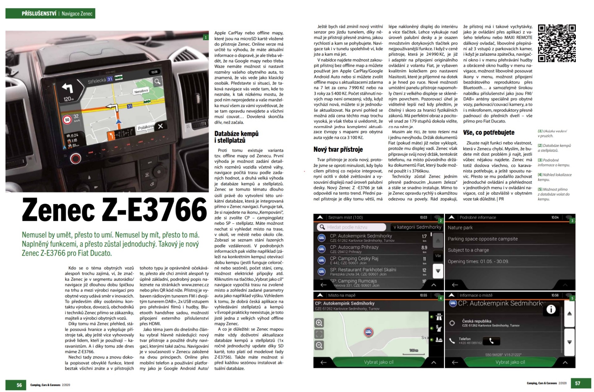 Kdo se o téma obytných vozů alespoň trochu zajímá, ví, že značka Zenec je v segmentu autorádio / navigace již dlouhou dobu špičkou na trhu a mezi výrobci navigací pro obytné vozy udává směr v inovacích. To především díky osobnímu kontaktu výrobce, dovozců, obchodníků i techniků Zenec přímo se zákazníky, majiteli a výrobci obytných vozů. Díky tomu má Zenec přehled, stále posouvá hranice a vylepšuje přístroje tak, aby ještě více vyhovovaly právě lidem, kteří je používají - karavanistům. A i díky tomu zde dnes máme Z‑E3766. Nechci tady znovu a znovu dokola popisovat obvyklé funkce, které beztak všichni znáte a v přístrojích tohoto typu je oprávněně očekáváte, přesto ale chci zmínit alespoň ty úplně základní, podrobný popis naleznete na stránkách www.zenec.cz nebo přes QR kód níže. Přístroj je vybaven rádiovým tunerem FM i dvojitým tunerem DAB+, 2x USB vstupem pro přehrávání filmů i hudby, Bluetooth handsfree sadou, možností připojení externího příslušenství přes HDMI. Jako téma jsem do dnešního článku vybral hlavně následující: nový tvar přístroje a použité druhy navigací, kterými také začnu. Navigování je v současnosti v Zenecu založené na dvou principech. Online přes mobilní telefon a používání platformy jako je Google Android Auto/ Apple CarPlay nebo offline mapy, které jsou na microSD kartě vložené do přístroje Zenec. Online verze má určitě tu výhodu, že máte aktuální informace o dopravě, je ale třeba vědět, že na Google mapy nebo třeba Waze nemáte možnost si nastavit rozměry vašeho obytného auta, to znamená, že vás vede jako klasický osobák. Představte si situaci, že taková navigace vás vede tam, kde to neznáte, k tak nízkému mostu, že pod ním neprojedete a vaše manželka musí všem za vámi vysvětlovat, že se tam opravdu nevejdete a všichni musí couvat... Dovolená skončila dřív, než začala.