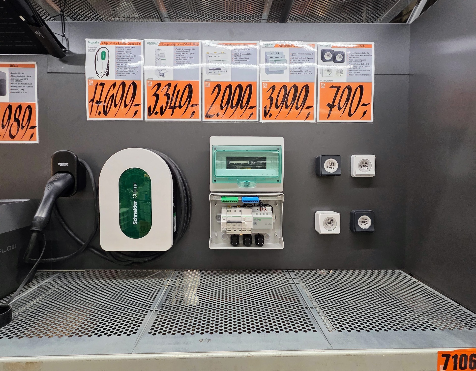Minulý týden jsme byli v Hornbachu. Hned u vstupu – samostatné oddělení elektromobility.